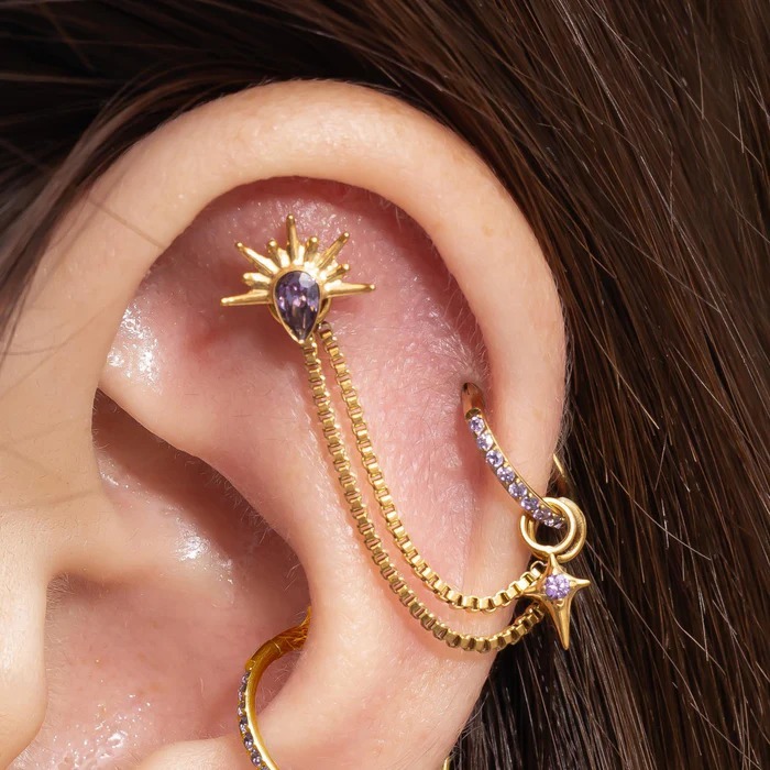 Taking care of your helix earring is important for both comfort and hygiene. Clean your earring regularly with a gentle solution recommended by your piercer. Avoid sleeping on your pierced side until the healing process is complete. If you notice any redness, swelling, or discharge, consult a professional.